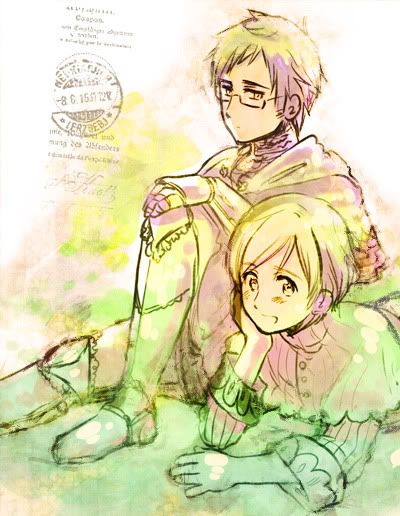 ...in other words, Sweden like him. A lot. Word of God dictates that Sweden is gay for Finland, and only Finland, in a way that implies that he isn't bi and makes an exception for his eastern neighbour, but that he really is only interested that way in one living being, and that is Finland. Besides Denmark, who used to be his best buddy and brother when they were younger and now his his favourite enemy (it's a cannot be with and cannot be without kind of thing), Finland is the most important person in his life. * They met when they were still young, and at some point Sweden picked Finland up, made him Christian and took him home. How consensual all of this was is questionable, but fact is that Sweden wanted the other nation around, to spend time with him and protect him... He has always only wanted the best for Finland, to be sure that the other nation is safe and happy, to the point where he retreated from a battle to not see his "wife" hurt, and whenever he really did make feel Finland bitter or angry or bad in any other way, he didn't mean to; and because he isn't the best at interpreting Finland's words and actions, he probably doesn't even notice more often than not.